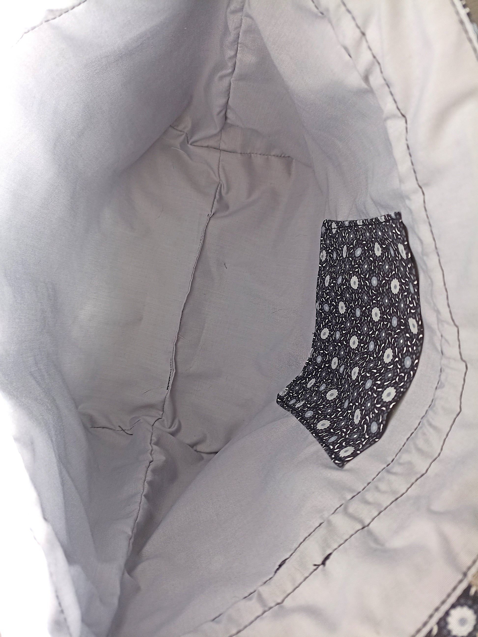 Black With Grey and White Flowers Drawstring Bag Unique Durable Gift For Her Sustainable Fashionable Fully Lined With Inside Pocket