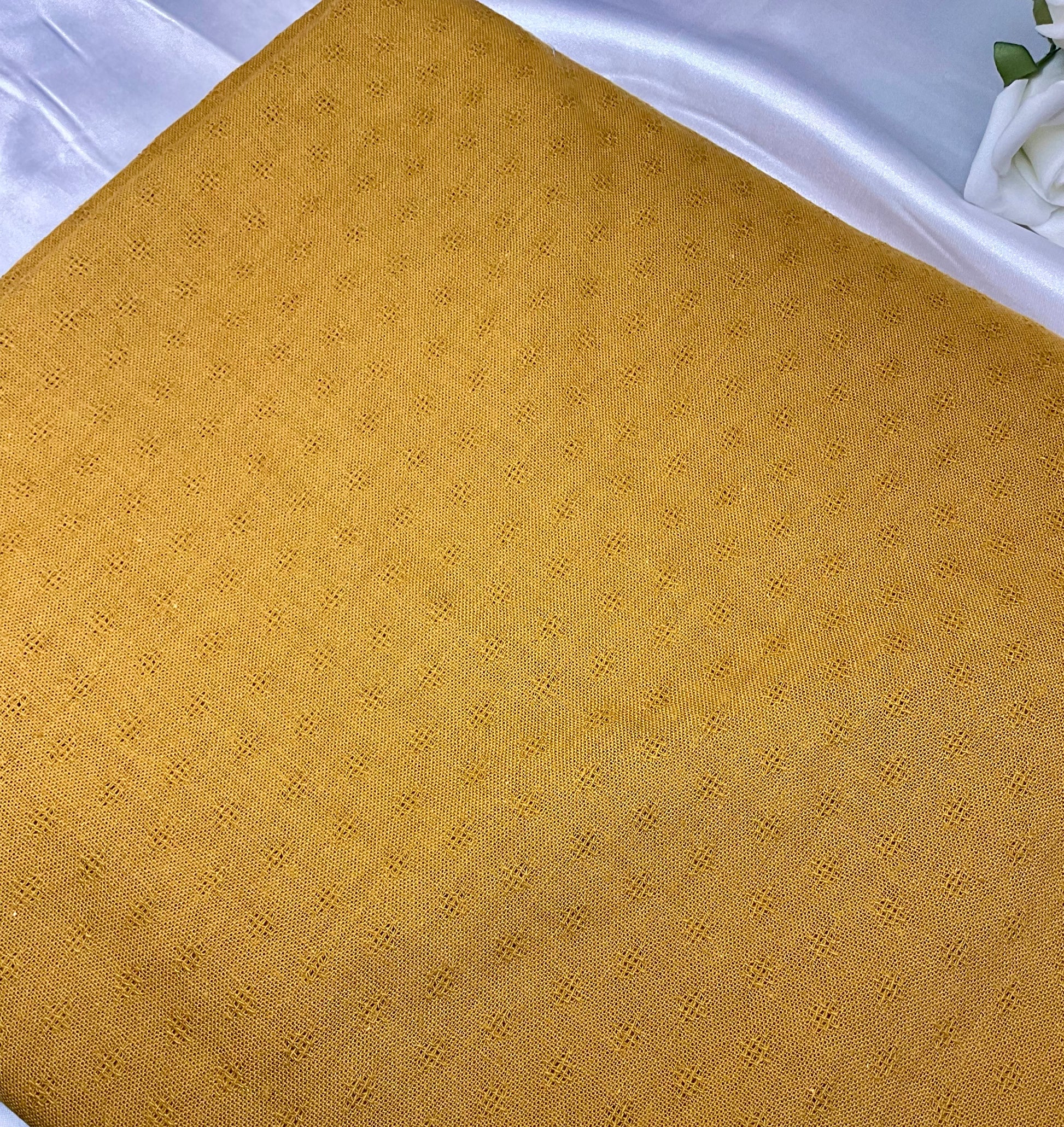 Mustard with white lace trim
