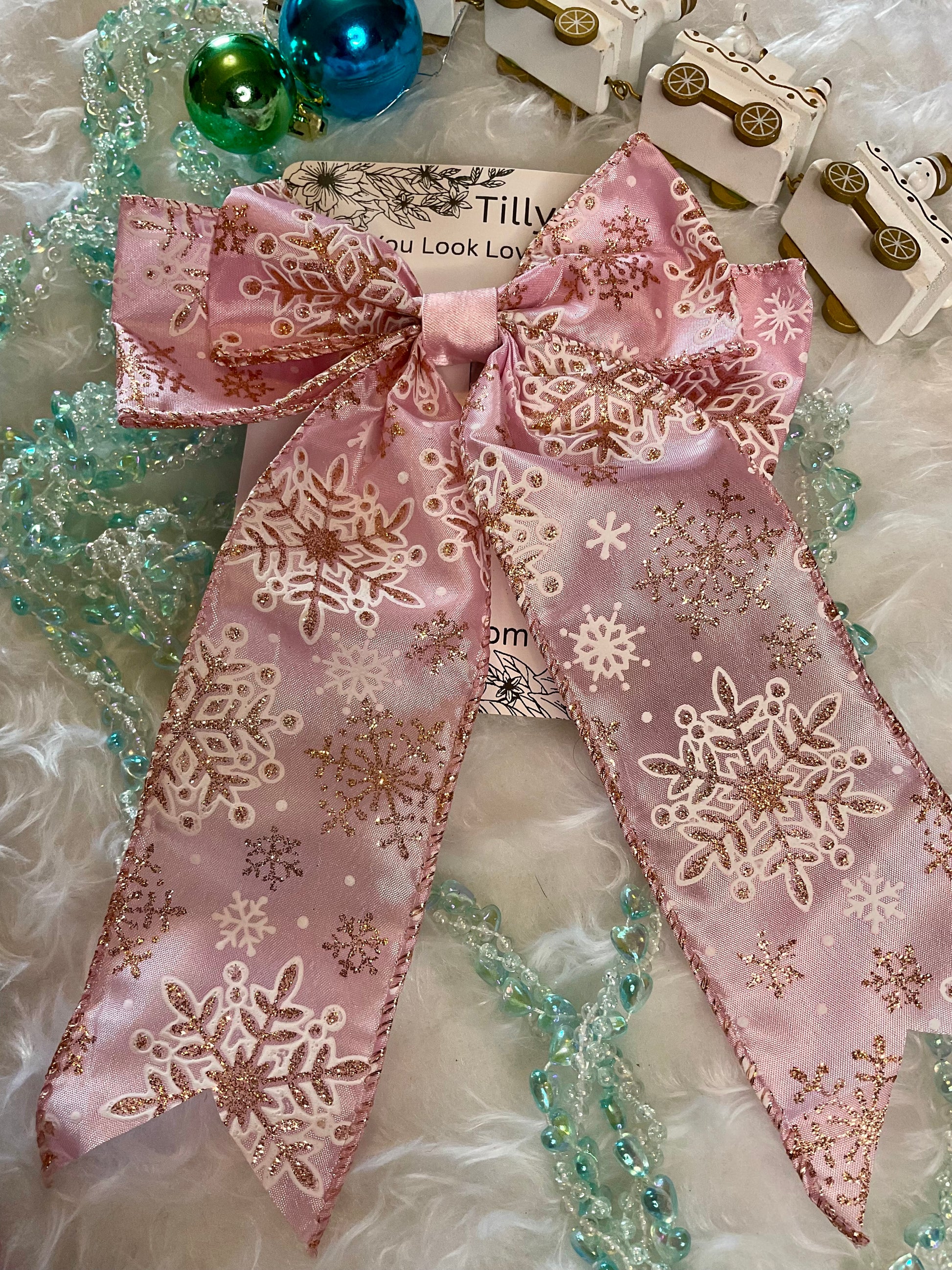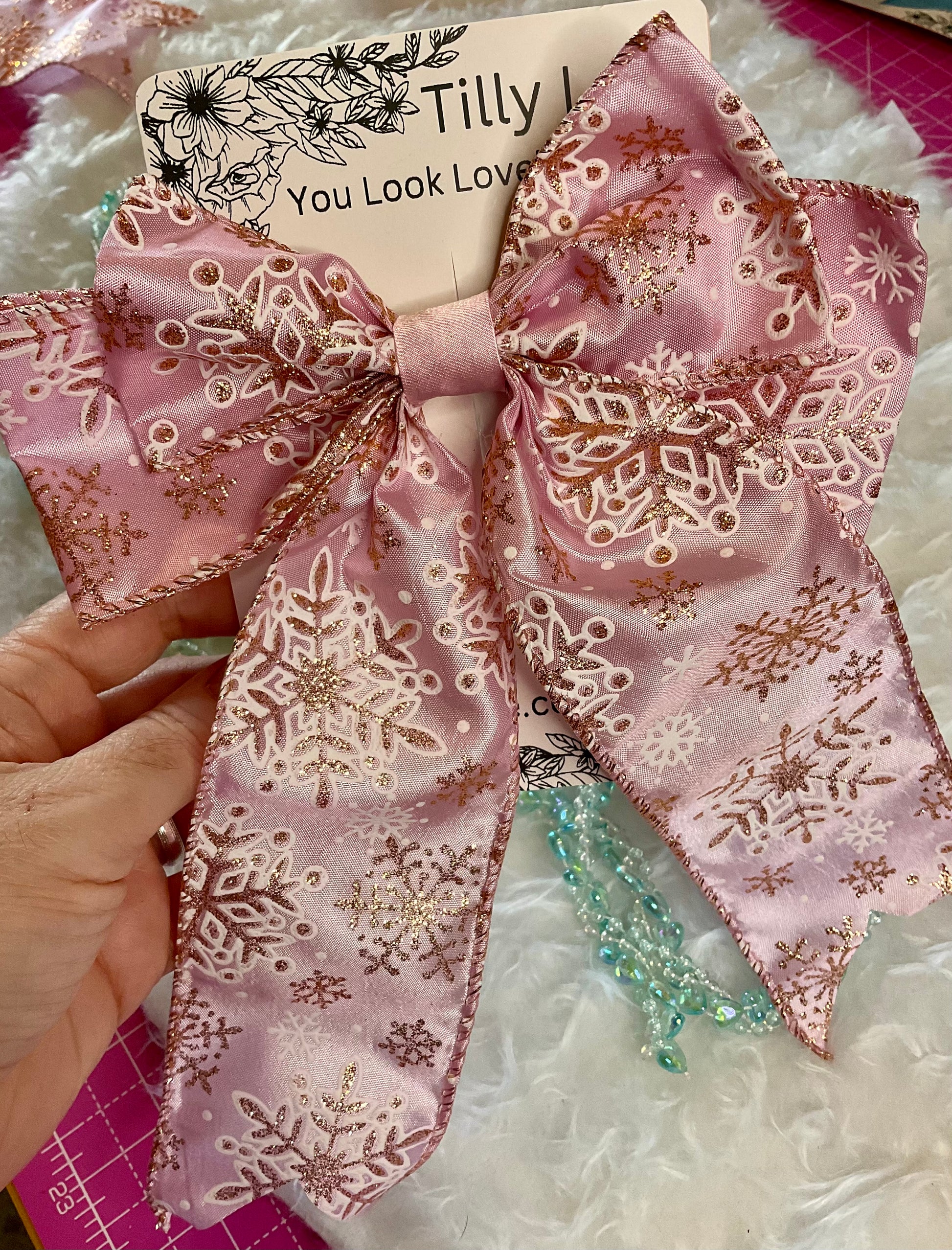 Christmas Winter Snowflakes Wired Bow Hair Clip