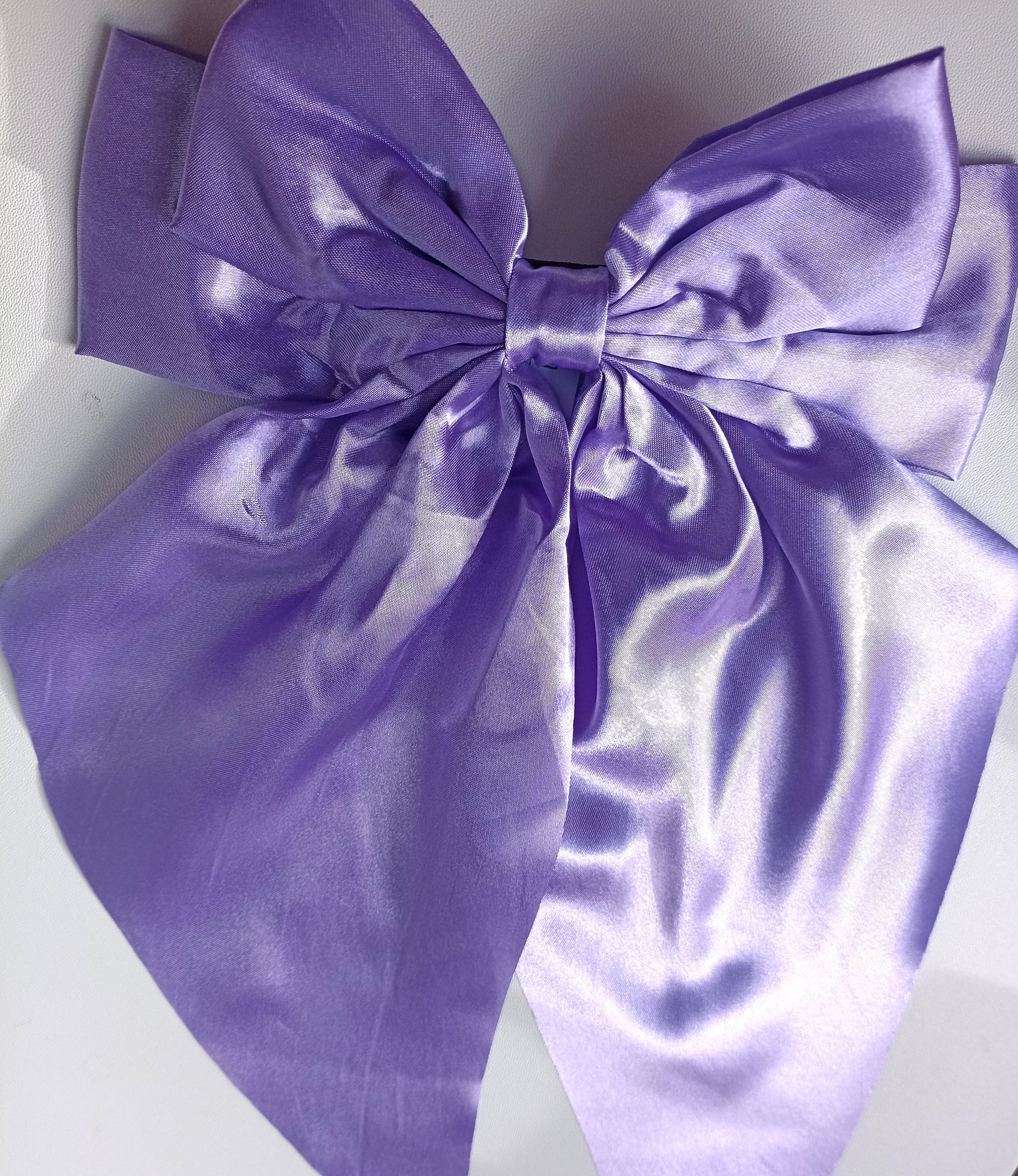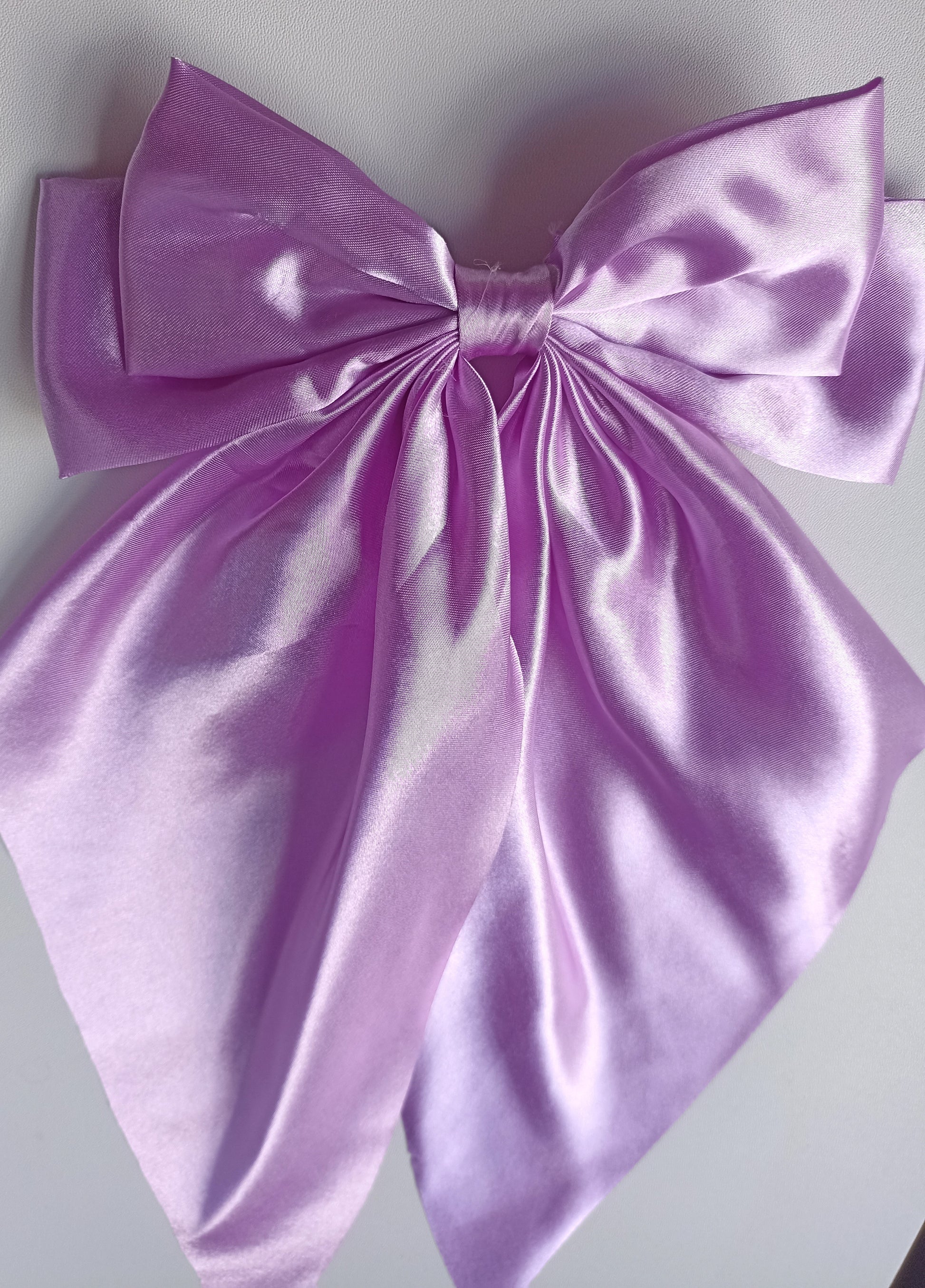 Oversized Satin Hair Bow Clip: Long Tail Ribbon Barrette - Handmade UK