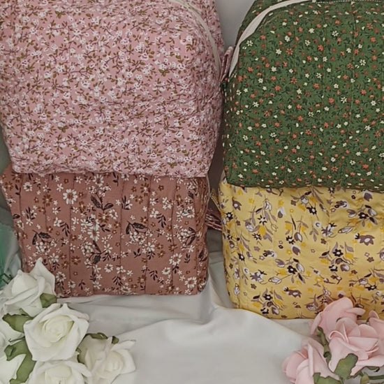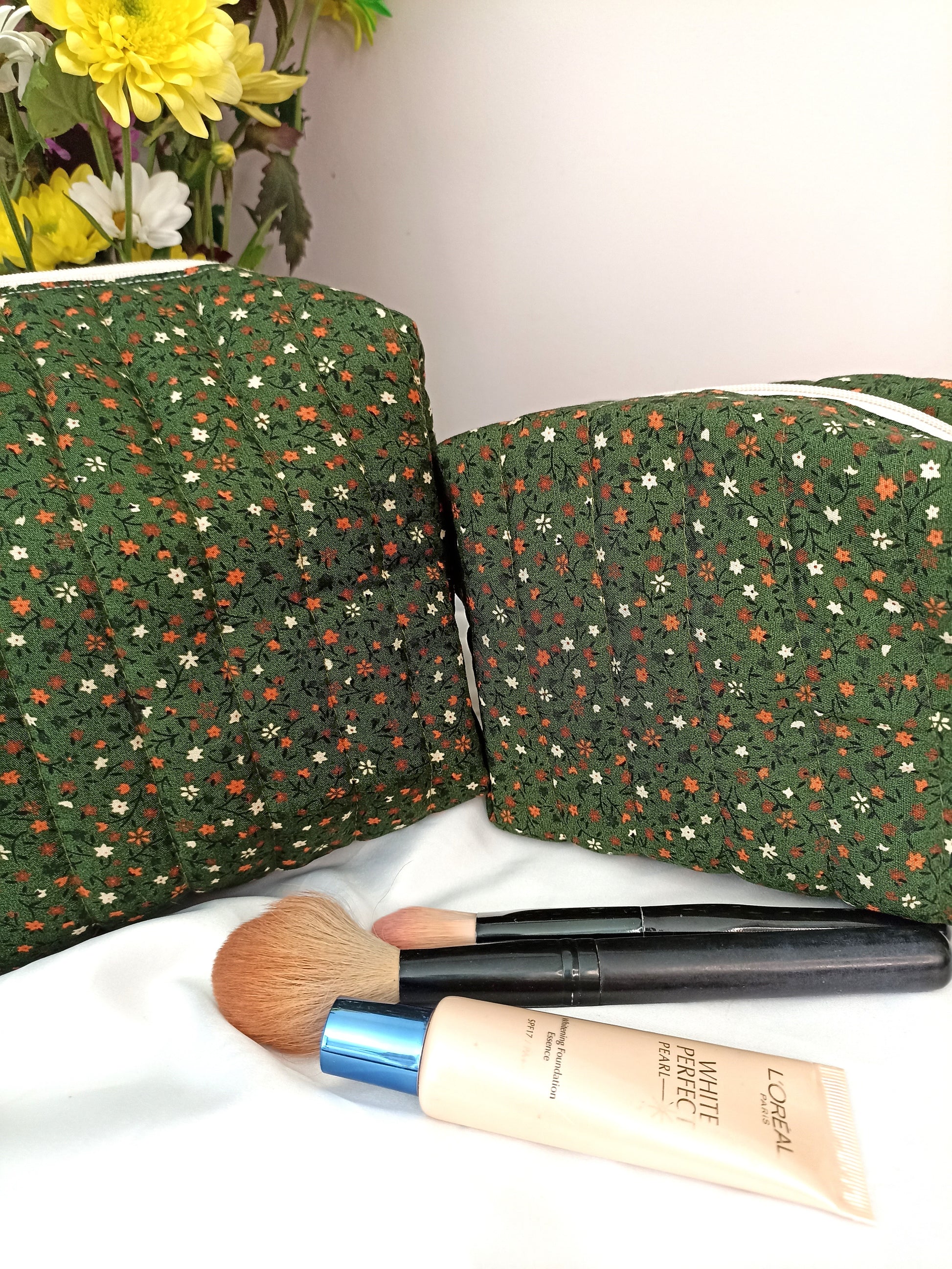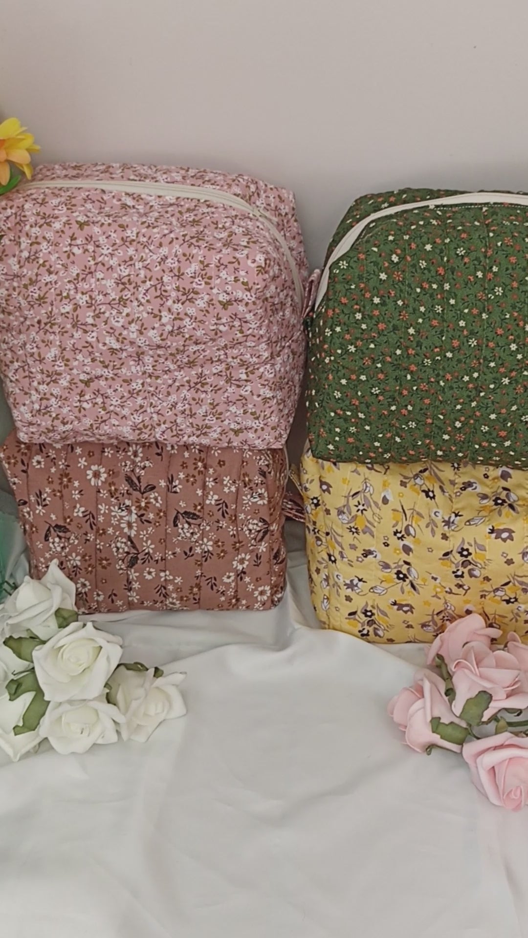 This quilted cosmetic bag is ideal for daily use and keeps your makeup organized. They just the right size to fit all your beauty essentials, including creams, lipsticks, brushes, eyeliner and more. These floral makeup bags are stylish and practical for use at home, school or on the travel.