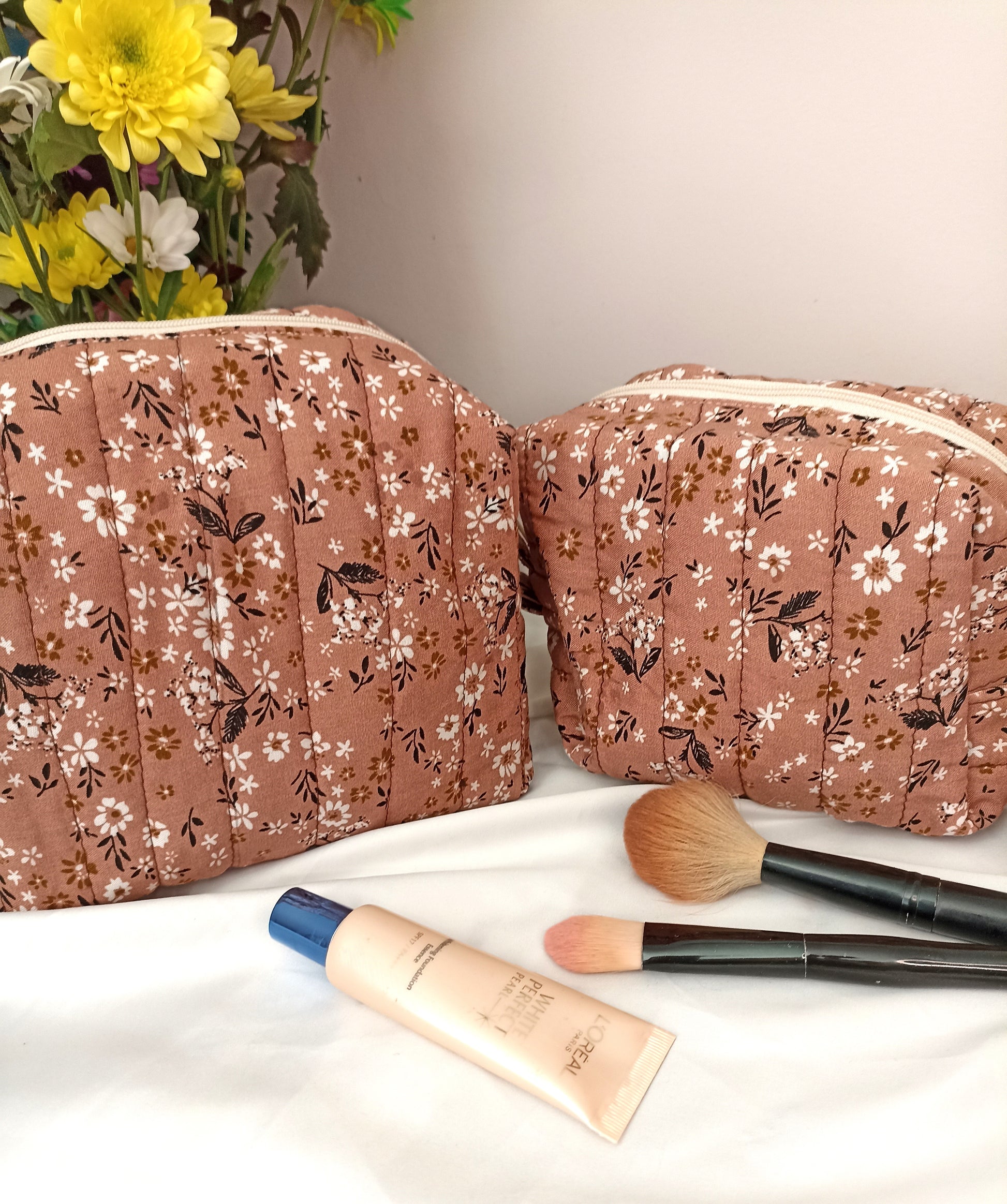 Quilted Cotton Makeup Bag | Cosmetic Bag | Handmade | Toiletry Bag | Ideal Gift | | Choose Small Or Large Wash Bag I Fully Lined