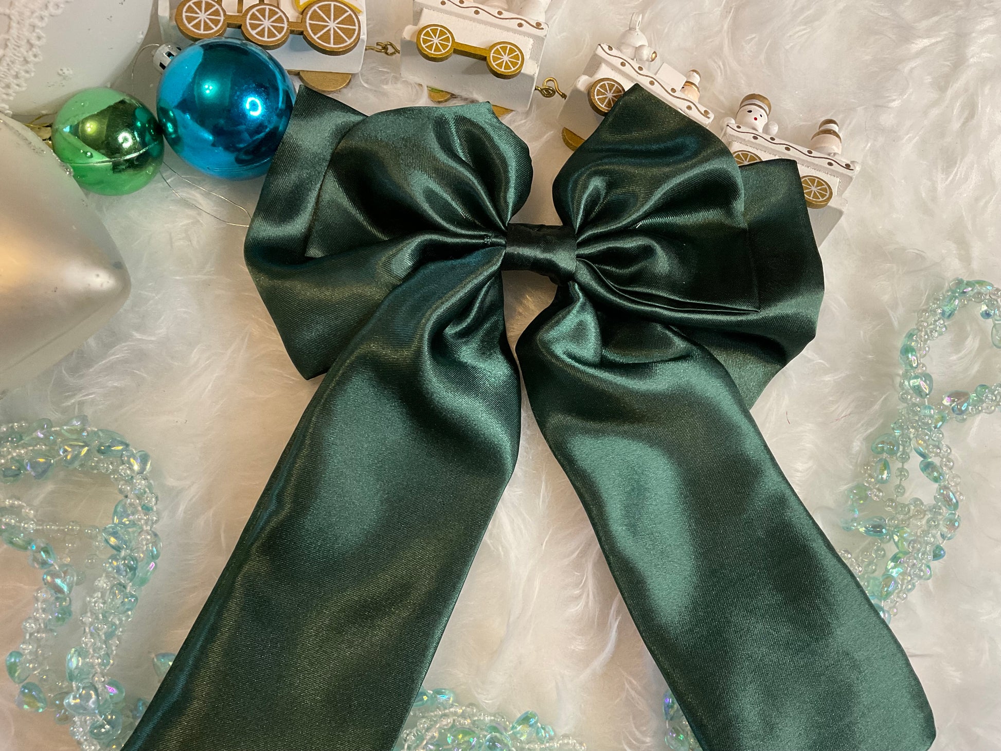 Bottle Green Satin Bow Hair Clip